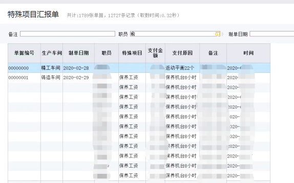 除車間的工序匯報(bào)以外,針對辦公室或其他獎勵等機(jī)制的工資錄入,通過特殊項(xiàng)目匯報(bào)單進(jìn)行工資匯報(bào),單據(jù)中的項(xiàng)目可自定義,及時(shí)形成對應(yīng)的工資表。